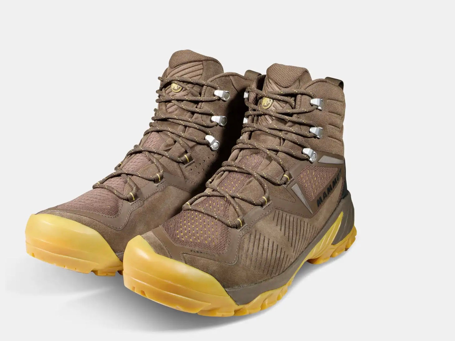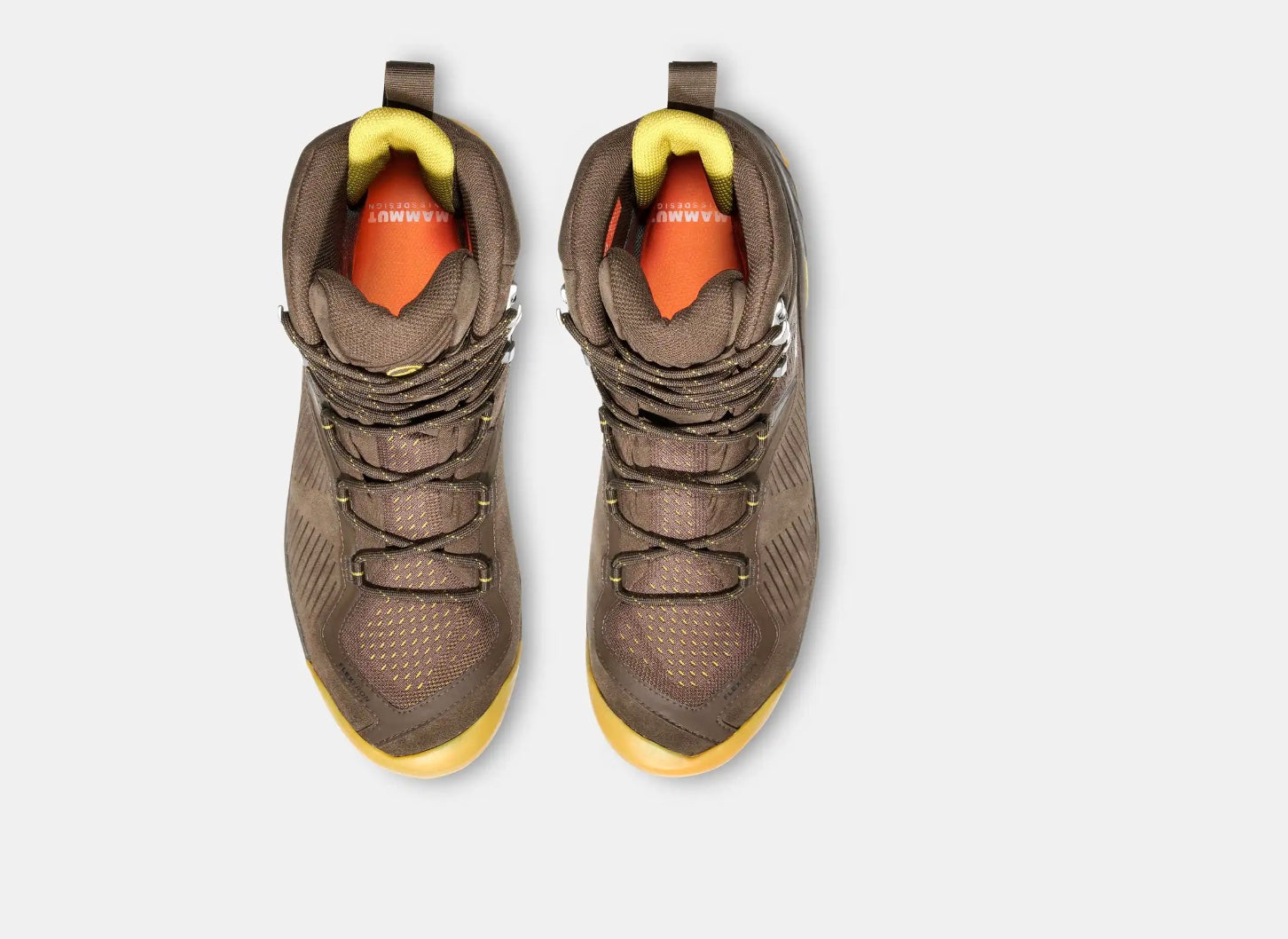 The Sapuen High GTX is the right choice on all kinds of terrain. Mammut Flextron® technology supports the natural rolling movement of the foot and thus more efficient use of energy when hiking and mountaineering, while Mammut Georganic® 3D technology guarantees maximum comfort. All components in contact with the foot are anatomically shaped with great precision while the classic tongue construction offers easy entry. Optimized for hiking: a Vibram rubber blend for secure grip on outdoor surfaces and a sole design that supports self-cleaning. The waterproof GORE-TEX membrane guarantees dry feet.