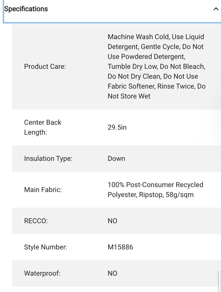 - 700-fill, 80% recycled down / 20% Kapok flower down